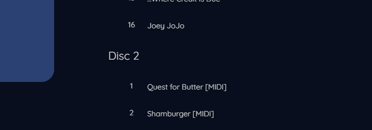 Disc #,Disc_#,Disc#,DVD,CD, evenTapeandVinylonce. I'd prefer the option to simply use the tags from all files and ignore folder structure entirely. People do some amount of curation so their uploads aren'tr_d1e82928.wavor whatever anyway. Might as well go full-bore and either let people use folder or tags exclusively. Big fan of OCR remixes. They have a lot of albums such as theirVoices of the Lifestreamthat uses names for the "discs", such asCrisis,Dirge,Advent,Order. I'd prefer it be recognized as a single album (Voices of the Lifestream) and each disc be labeled correctly as such. The tags reflect this complex structure. "If you want a more complex library structure for your music you'll need to curate and tag it, then enable scanning by tags-only" sounds nice.@KodeToad commented on GitHub (Mar 31, 2024):