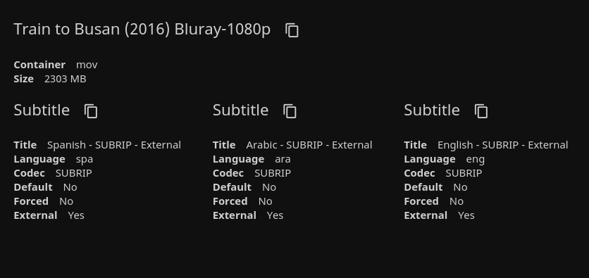 I'm having an issue where I add some .srt subtitles next to a video file, using the .en.srt .es.srt naming convention. I run "search for new or updated files" on just the one individual title. all the new subtitles show up. I go to play the file, and the new subs are gone. its as if its not writing to the database or something but i cant pin it down in the logs.