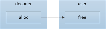 这种方式可以实现解码器在解码过程中零拷贝输出(解码器的输出帧与解码器内部使用的参考帧用是同一帧),但不容易实现零拷贝显示(解码器的输出帧不一定在显示端可以直接显示),同时要求用户知道需要给解码器开多大的空间进行解码。