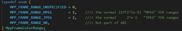 图像的色彩空间格式分为YUV和RGB两类。MPP支持多种内存排布方式(f),id后的数字为不同内存排布方式对应的参数值,值得注意的是,YUV和RGB格式的参数值有显著区别。