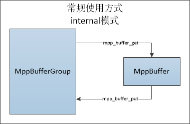 在解码过程中解码图像的缓存通常需要在固定的缓存池里进行轮转为了实现这一点MPP在MppBuffer基础之上又定义了MppBufferGroup。MppBuffer的使用方式有两种常规使用方式和外部导入方式由于二者的内存分配方式不同也称为internal模式和external模式。