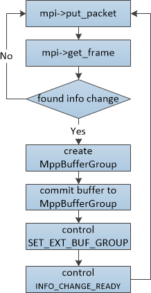 以视频解码为例码流输入端把地址和大小赋值给MppPacket通过put_packet接口输入在输出端通过get_frame接口得到输入图像MppFrame即可完成最简单的视频解码过程。