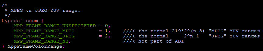 图像的色彩空间格式分为YUV和RGB两类。MPP支持多种内存排布方式fid后的数字为不同内存排布方式对应的参数值值得注意的是YUV和RGB格式的参数值有显著区别。