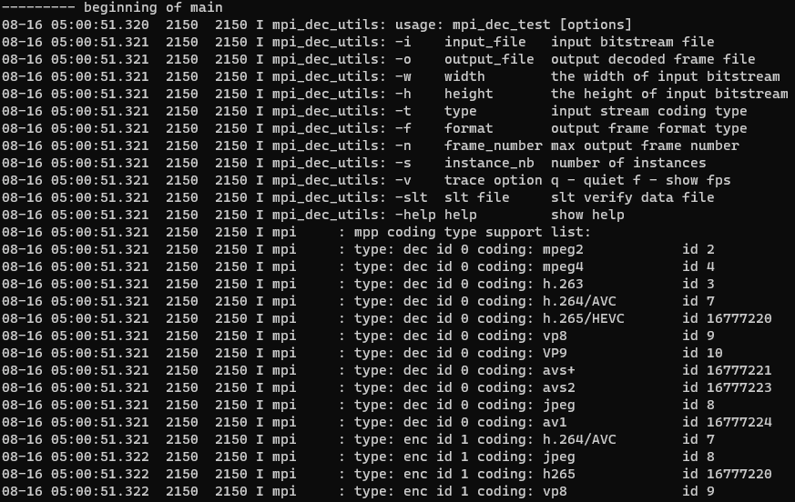 mpi_enc_test的命令参数中日志选项v为q时MPP日常日志关闭日志选项v为f时每秒会打印一次平均帧率和当前帧率。