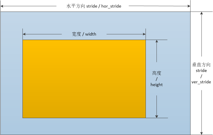 | -hstride | 垂直方向相邻两行之间的距离,单位为byte。 |